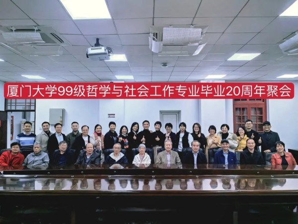 时光如梭,在厦门大学哲学学科百年回眸之际,1999级哲学系校友也迎来了毕业20周年。12月16日-17日,同学们怀揣感恩的心、从祖国大江南北如约而至,继10周年后再聚首母校。哲学专业白锡能、吴开明、陈墀成、乐爱国、周建漳,社会工作专业张友琴、胡荣、戴小力、魏爱棠,哲学系原党总支副书记林金枝,辅导员刘君彬、吴玲玲、刘家军等老师应邀莅临联谊交流。