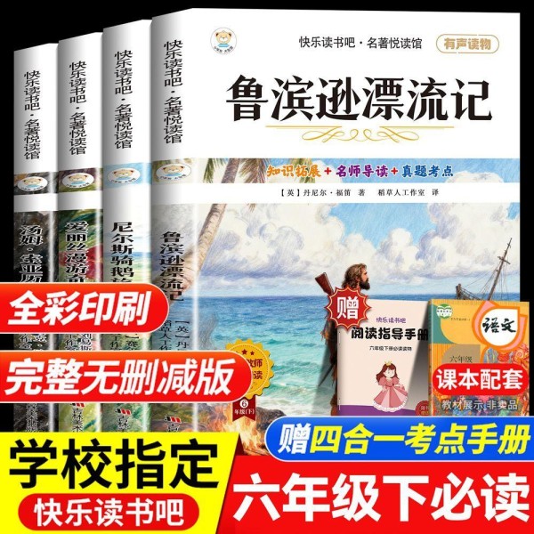《鲁滨逊漂流记》等经典作品由儿童文学作家进行适度改编,在保留原著精髓的基础上,调整了复杂句式和不适合儿童的暴力描写,让六年级学生也能轻松读懂文学巨著。