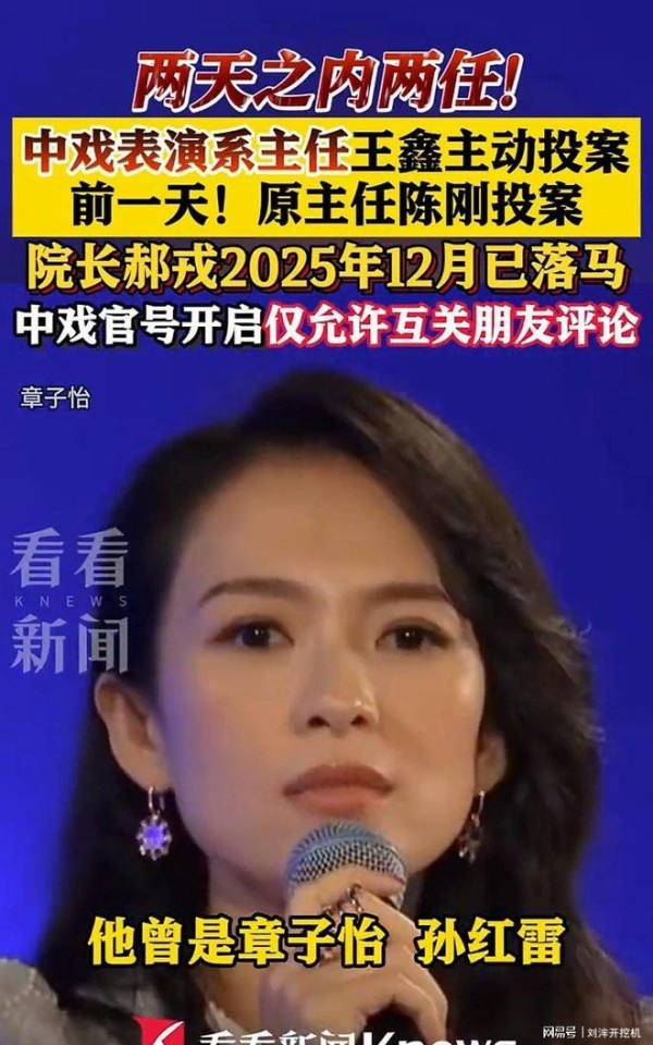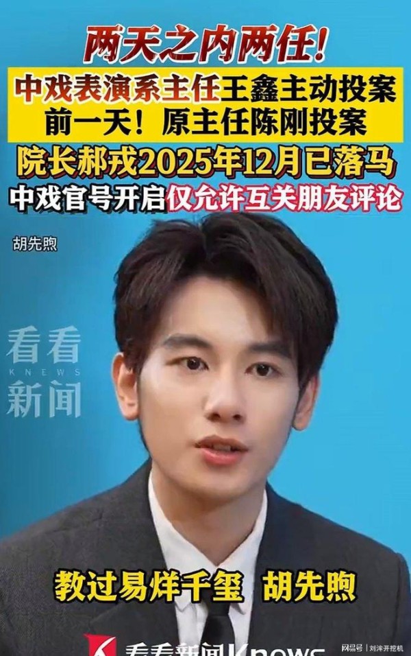 2026年2月13日,中央戏剧学院表演系主任王鑫涉嫌严重违纪违法,主动投案。而在他投案之前,原主任陈刚已投案。再之前院长郝戎主动投案。