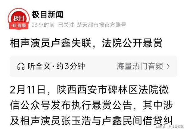 那就是相声演员卢鑫,而卢鑫竟然“上演”失联!