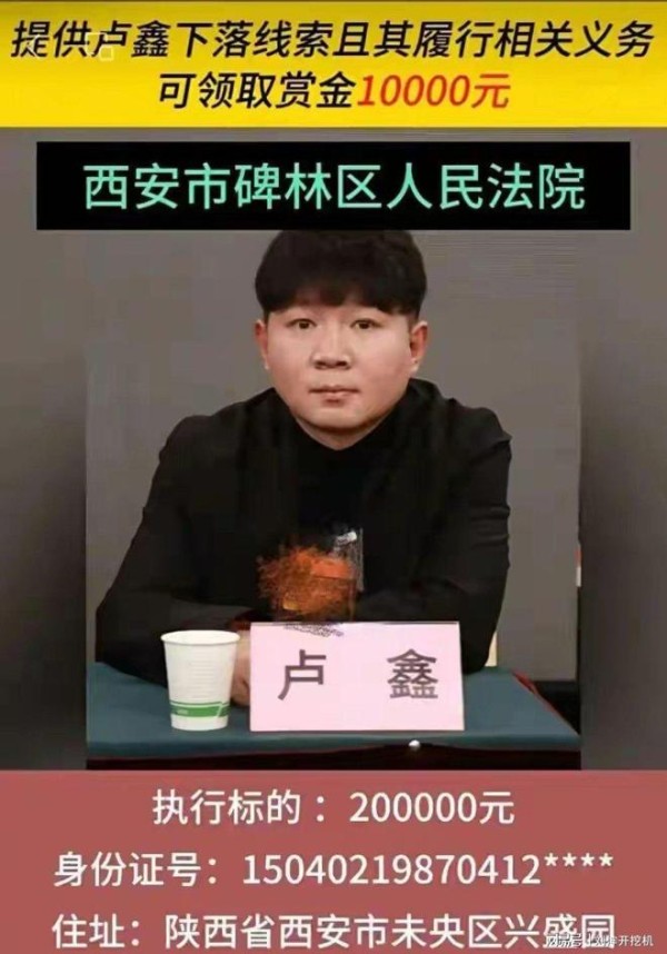 而通过西安市碑林区人民法院的公开悬赏得知,卢鑫竟然成了“老赖”——