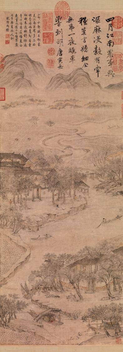 明唐寅《江南农事图》,描绘了江南水乡的风貌(台北故宫博物院藏)
