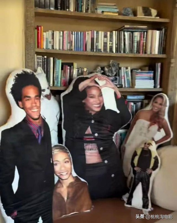 视频里,不仅有她和威尔的“分身”,连三个孩子——33岁的特雷、27岁的贾登和25岁的维罗也被印成了真人大小,在鲜花和气球的簇拥下显得既诡异又温馨。贾达配文称这是“适合全家拥抱的礼物”,祝大家“爱之日”快乐。