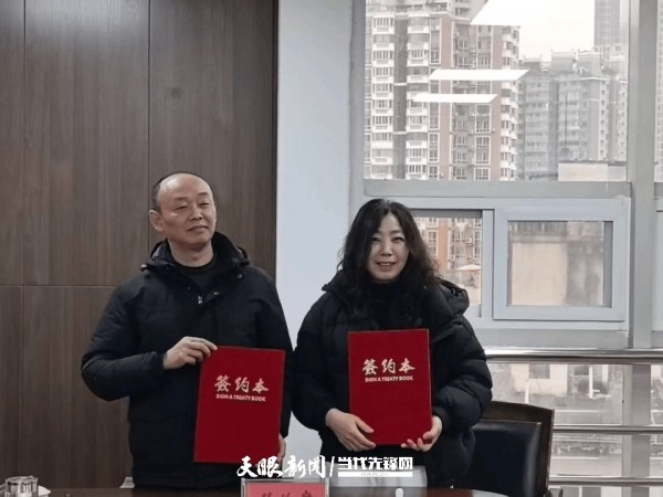 贵阳市作协主席王剑平与贵州省作协副主席、省文学院院长戴冰签约