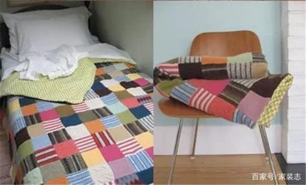 家里有不穿的毛衣去给它进行颜色的排列,然后给它进行重新的缝合处理,这样的拼接是为了把它制作成新的毯子,让它可以成为最好的居家装饰品。把毛衣的边角料都给拼接成整体的状态, 会让它形成一个平整的状态和效果。