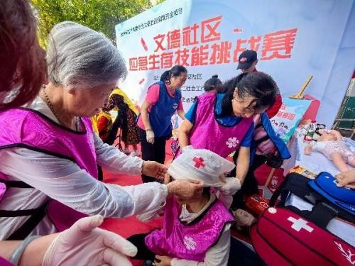 为了进一步推进应急救护培训进社区,更加广泛的提升广大居民自救互救能力。文德社区携手益嘉仁社工于2025年4月19日在新风路红旗连锁小广场开展了文德社区应急生存技能挑战赛。