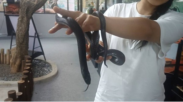 沿着田埂往前走,便到了小动物园。小羊羔温顺地凑过来蹭手心,小兔子在围栏里蹦跳,孩子们拿着投喂盒小心翼翼地递上青草,笑声在草地上回荡。隔壁的爬行动物科普馆则是另一番奇妙天地:玻璃展柜里,鬃狮蜥趴在岩石上晒太阳,玉米蛇缓慢地舒展身体,现场把蜥蜴、蛇及乌龟等动物用双手抱起来,游客零距离与可爱的爬行小动物们接触、体验,讲解员用通俗的语言介绍它们的生活习性与生态作用,打破了大家对爬行动物的刻板印象,十足的研学范儿。