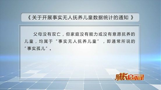 12月23日晚21点55分,由共青团中央维护青少年权益部指导,中央广播电视总台央视社会与法频道推出的重点年度节目《成长启示录》第二期将准时播出,让我们一起,倾听事实孤儿的心声。