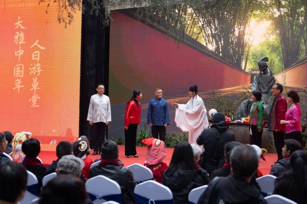 这是2月23日拍摄的丙午马年“人日游草堂”祭拜诗圣仪式。 新华社记者 江宏景 摄