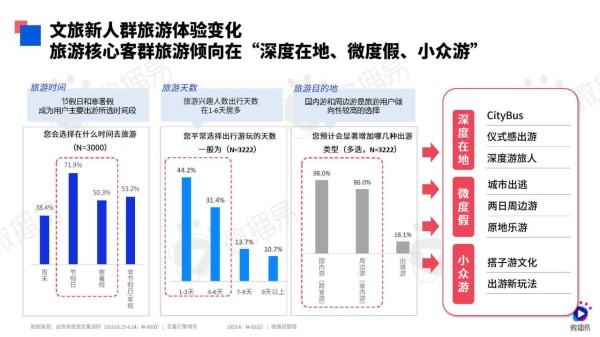 报告显示,元数青年、亲子家庭、中产一族和乐活一族成为文旅行业的新增长人群。这些群体在文旅需求、旅游体验、决策路径和触媒习惯等方面都发生了巨大变化,为文旅营销带来了新的机遇和挑战。