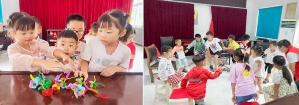 双职工家庭较多是长生村的又一特点,折射出的难点就是青少年陪伴成长问题。长生村挖掘村落资源,采用以大带小模式,开展暑期青少年成长营,让大学生陪伴带动中小学生学习成长。组建长生大学生志愿服务队,招募在地在校优秀大学生11人,建立长生大学生志愿服务队,并发挥大学生作业辅导、手工制作、绘画艺术、心理疏导等特长,凸显大学生成就感;精心研发训练课程,结合青少年的兴趣爱好,大学生志愿服务队设计并开办课程辅导、创意美术、趣味游戏等三门课程,累计480人次参加,共授课60课时。暑期成长营,不仅有效解决了双职工家庭的后顾之忧,帮助青少年认识自己,提高学习成绩,更增强了青少年的动手动脑能力和社会实践能力,营造了快乐教育和快乐成长分儿童友好氛围。