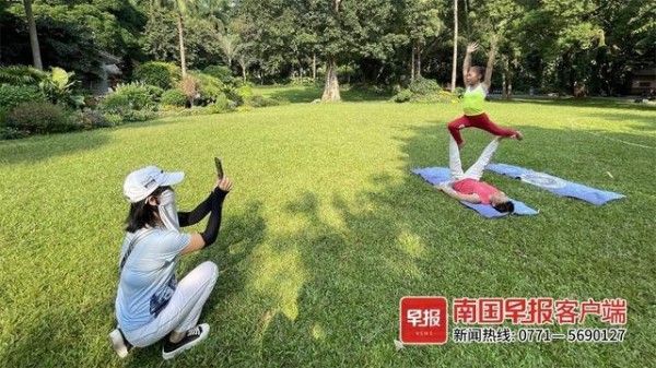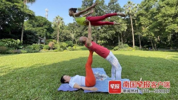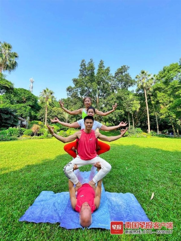 2020年10月,刘光华开始尝试双人瑜伽运动。今年4月,在朋友的介绍下,他在南宁市人民公园认识了一群年纪相仿、有着共同爱好的坤玲瑜伽队,虽然瑜伽队平均年龄达63周岁,但个个都是有多年经验的瑜伽好手。