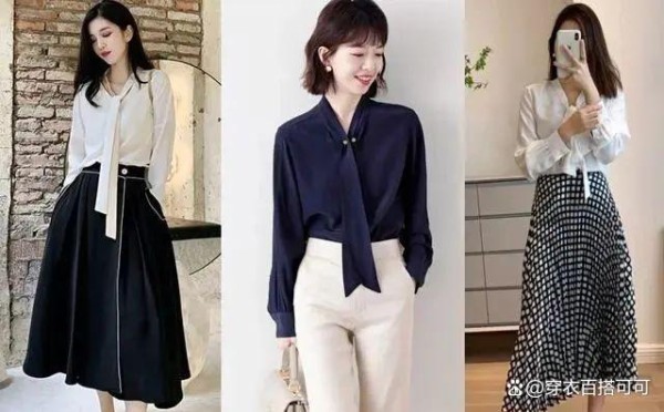 夏季的通勤风格注重基础款式,例如衬衫、烟管裤、百褶裙和针织衫等简约设计的单品非常适合上班穿着。今年流行的飘带领衬衫可以搭配简约的百褶裙,选择经典的中性色搭配,展现女性优雅温柔的一面,同时也散发出端庄和高级感。