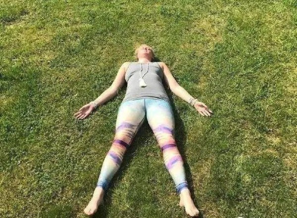 仰卧式放松,缓慢的呼气时,身体自然的落向地板,仍然维持下颚回收、尾骨内卷,让整个后背部均匀的、舒适的贴靠向地板,双脚依次蹬直,呼气时脚趾尖回勾蹬向远端,吸气放松,仰卧放松,在此停留一分钟的时间;
