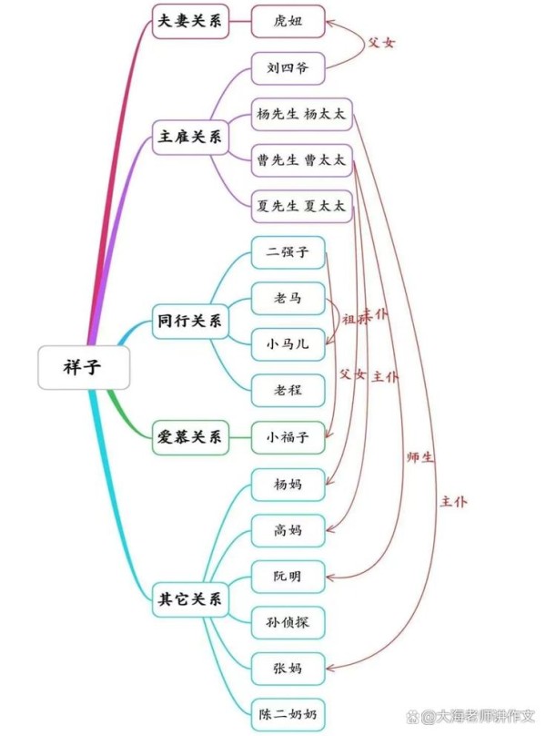 间接关系:祥子和高妈、孙侦探、陈二奶、阮明