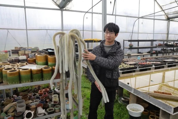 有了起步资金,谭俊果断扩大规模,一头扎进营养土配比、光照管控等技术研究中。长沙多雨酷暑的气候、初期技术的不成熟,曾让他损失数千盆多肉,却从未浇灭他的热情。他咬牙坚持,终于摸索出适配本地气候、成本低廉的营养土配方,建起56平方米的竹制小棚,正式当上“多肉棚主”。