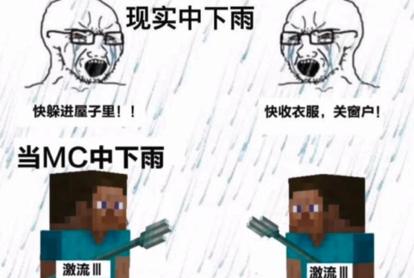 《我的世界》里下雨了:掏出藏了很久的激流三叉戟,然后——芜湖,起飞!