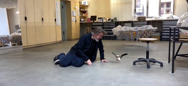 埃利亚松:“我通常是个很倚重模拟技术的艺术家,不过我关注数码世界[是因为]我对系统设计和生物设计的兴趣。在疫情封锁期间,这是少数没有被关闭的空间之一。我们都深受方形说[对方形的偏好]所害,因为我们整天看着一块屏幕。我在虚拟现实作品《彩虹》(2017)里和Acute Art有过合作,于是我就跟他们谈起用一个AR作品把户外——雨、云、彩虹、太阳、花朵、石头、海鹦——搬到室内。很有意思,在餐桌边有一只珍惜的鸟挺好的。”