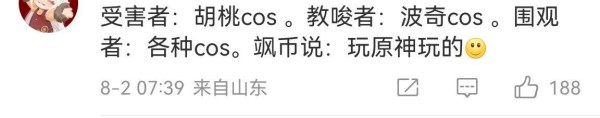 许多人看到这件事就认为二次元文化恶心,毕竟这件事是在玩COS时发生,女孩和忽悠她的COSER都是原神爱好者,这就导致了许多不喜二次元的人更加讨厌它。