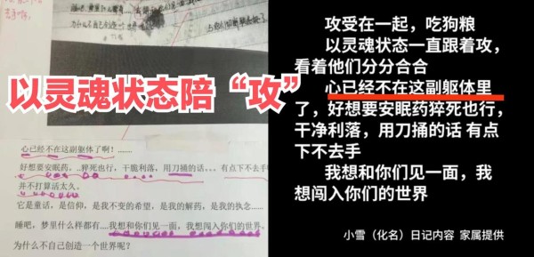 15岁的花季少女,本该是充满活力和朝气的时候,不过因为沉迷耽改书籍、耽改游戏,终日被二次元中的虚拟“攻”“受”人物所吸引,思想遭到麻痹和侵蚀,最终导致轻生离去。