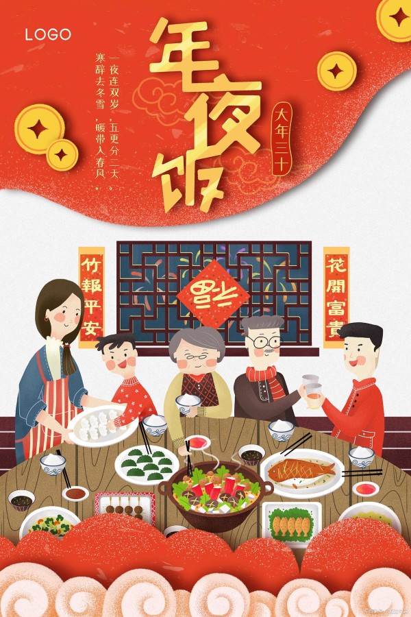 习俗:有吃年夜饭、贴春联、给压岁钱等风俗。
