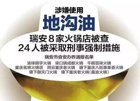 温州瑞安接连端掉“大龙燚”“万德府”等8家火锅店,警方刑拘24人,连《舌尖2》亮相的渝味晓宇也未能幸免。地沟油年年上榜,却年年有人中招;大蒜变红、冰箱结冰之类的土办法,在精炼除臭技术面前只能缴械投降。