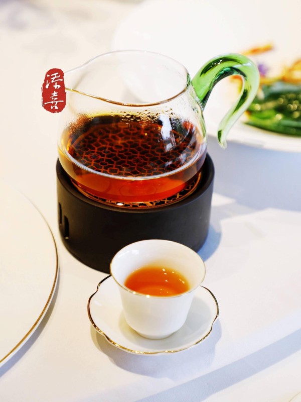 拾璞精心研制的四季康普茶成为餐配酒中的一大亮点。春,撷取明前龙井之嫩叶,以自然之力唤醒春日生机;夏,冷萃茉莉于清凉之中,花香馥郁,驱散炎炎暑气;秋,岩茶肉桂的醇厚融入,带来山林间的深邃与成熟;冬,白毫银针轻舞,封存冬日银装素裹的纯净与高洁。每一季,历经4至15天的精心发酵,碳酸化处理增香添味。酸甜平衡,气泡细腻,开胃解腻,与轻盈前菜完美搭配。