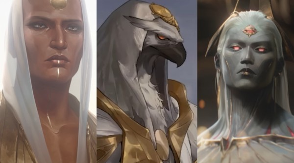 从故事中我们了解到,亚恒拥有三重交织的身份:他曾是周身金光、受万人敬仰的天神战士,心怀对同胞与世界的深爱,并引领众多恕瑞玛人走上飞升之路;在暗裔战争期间,他为了阻止堕落的同族统治世界,被迫与曾经的战友厮杀,直至将他们封入各自的武器之中;而即便自己也濒临堕落,他依然坚守“守护世界”的誓言——方式却是选择自我囚禁。