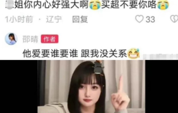 买超三亚和新欢约会的画面曝光后,有网友在评论区留言,称你内心好强大啊,买超不要你咯。本是想讽一下邵晴,却被新人挤走了好不容易抢到的买太太的位置。谁知邵晴居然还回应了买超有新欢的事,直言,他爱要谁要谁,跟我没关系。