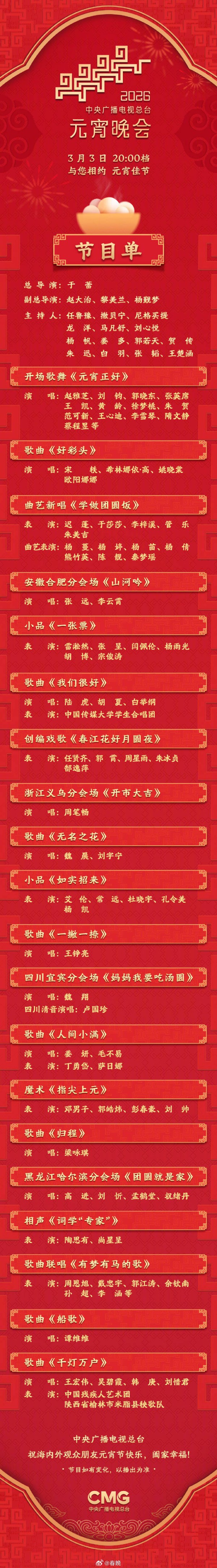 2026央视元宵晚会节目单出炉,亮点拉满,这波阵容稳赢!看完直接蹲直播