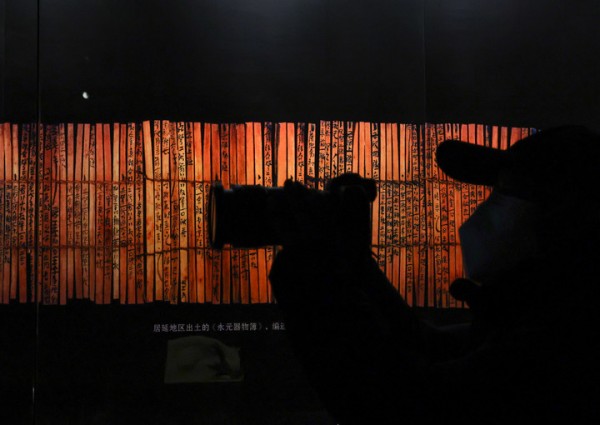 记者在“居延汉简”专题展厅拍摄。新华社记者殷刚 摄