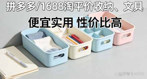 4. 文具、收纳类:拼多多/1688淘,便宜又好用