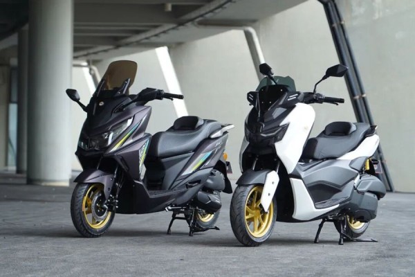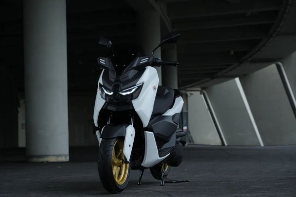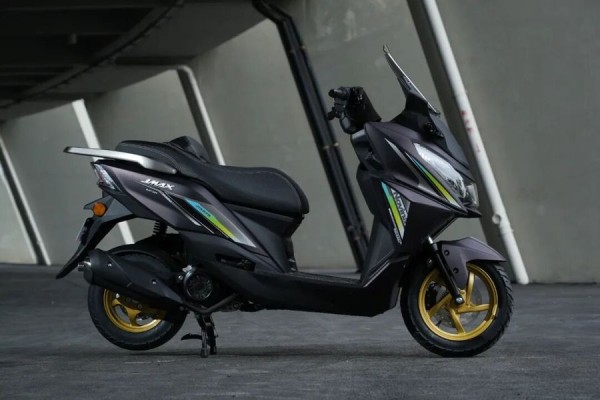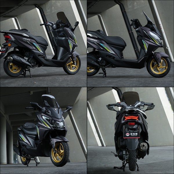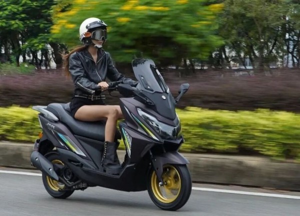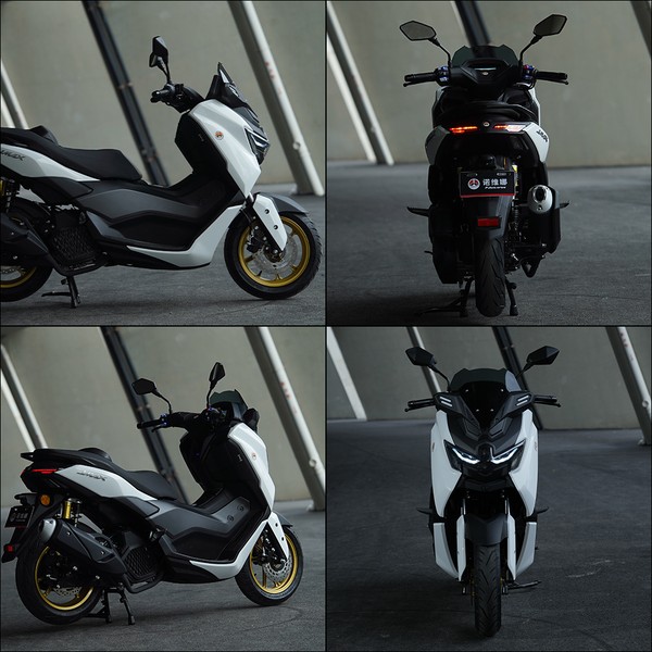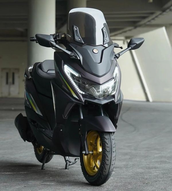 再看 M9,价格在 7980 - 9980 元之间,这个价格对于一款运动踏板来说,性价比相当高。它的外观设计很有运动感,借鉴了雅马哈 NMAX 的设计元素 ,车身线条以直线为主,搭配少量曲线过渡,车头微微下压,搭配熏黑处理的双 LED 大灯组,营造出一种俯冲的姿态,就像一只随时准备捕食的猎豹,视觉冲击力十足。前后 13 英寸的金色轮毂,搭配朝阳半热熔轮胎,进一步强化了整车的运动气息,让人一看就知道它不是 “吃素” 的。