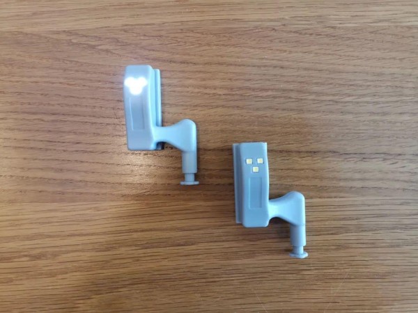 橱柜可说是居家剃光头的必备收纳神器,但每次打开橱柜,里面的光线都很暗,尤其是像橱柜一样放着小东西,常因光线暗给找东西带来一定的麻烦性。这时橱柜的铰链上加了一个“铰灯”。