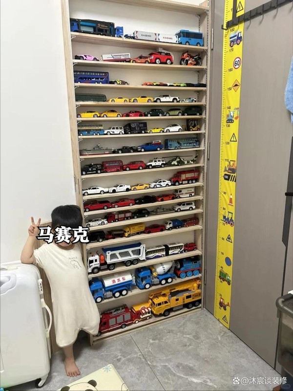 家里只要是有孩子,尤其是男孩子,玩具车一定不会少,怎么收纳又很头痛。可以在门后为它们量身定制一块“汽车收纳区”,瞬间解决这个收纳问题。