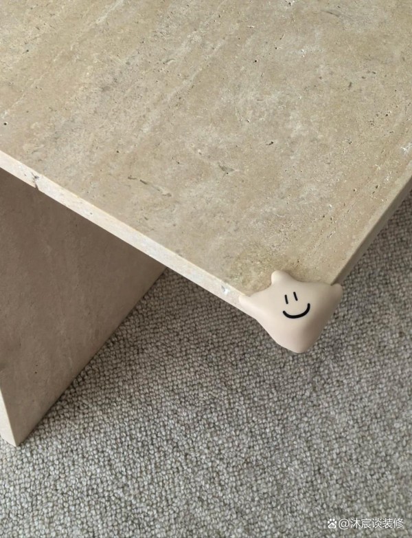 最后一点就是有关安全的,有孩子后,特别是他们学走路的这个年龄段,家具尖角是有潜在的危险。所以家里所有家具要么是圆角设计,要么就加装防撞条。这样圆润的边角不仅安全,还能让整个空间看起来更加温和舒适,这种设计细节也让大人不再提心吊胆,孩子们玩耍时也能放松许多。