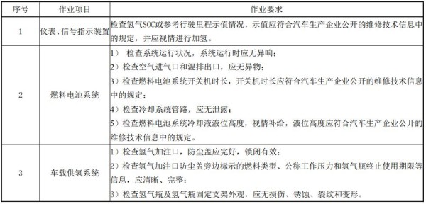 表 4 氢燃料汽车周期维护作业项目及要求