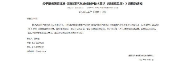 9月7日,国家交通运输部发布了关于征求国家标准《新能源汽车维修维护技术要求(征求意见稿)》意见的通知。