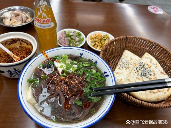 "老米家"的羊肉泡馍,坚持用传统方法熬制高汤,肉烂汤浓,馍筋光软。而"老刘家"的粉汤羊血,麻辣鲜香,羊血嫩滑,配上一个刚出炉的馍,便是冬日里最驱寒的美食。