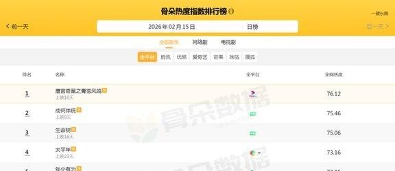 电视剧全网热度榜,生命树降至第三,第一热度高达7579