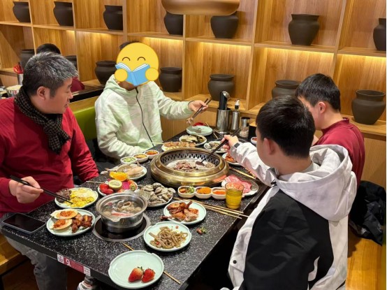 面对琳琅满目的菜品,孩子们脸上洋溢着惊喜与开心。大家有序取餐、文明用餐,互相分享、彼此照顾,在欢声笑语中品尝鲜美的虾蟹、贝类、刺身与各式佳肴。职工和老师细心陪伴在侧,帮孩子们夹菜、添饮,与他们聊天互动,关心饮食喜好,现场暖意融融,充满童真与欢笑。