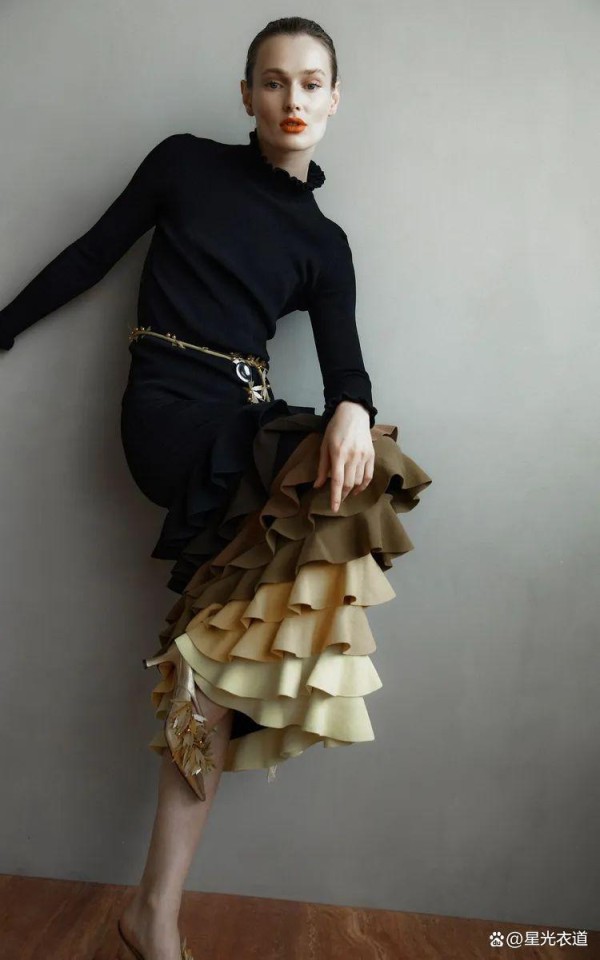 荷叶边的装饰还能够巧妙地调整身形比例,使得整个身材看起来更加修长纤细。