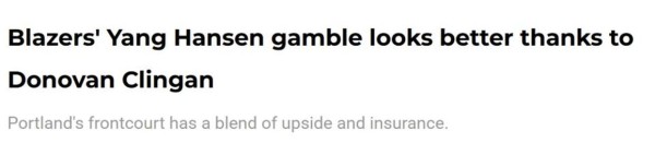 瀚森的签约看似充满风险,但对开拓者而言,由于现有阵容结构的支撑,实际风险已被显著降低。无论瀚森表现如何,球队的重建基础依然稳固,而这很大程度上得益于克林根的出色表现。