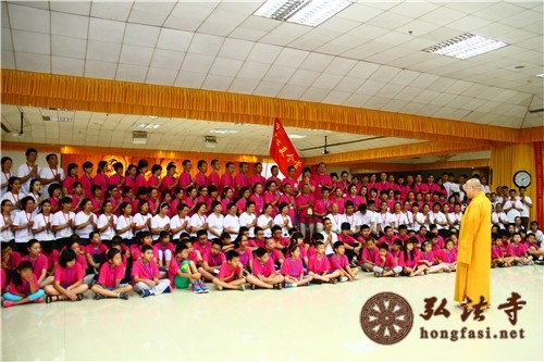 心量决定事业,心里只想着自己,内心永远是封闭痛苦的。弘法寺举办亲子夏令营,用智慧、善念促进父母和孩子之间的融入、理解。人不能为自己而活,更要为家庭、社会、国家、民族而活。心里想着家庭、想着父母、孩子,有着一份牵挂,会有痛,但更多的会是快乐。为了国家和民族,带着积极、使命、责任,过好每一天,过真正有意义的生活。最后大和尚祝大家健康、快乐、顺利、吉祥圆满,孩子们快快长大。