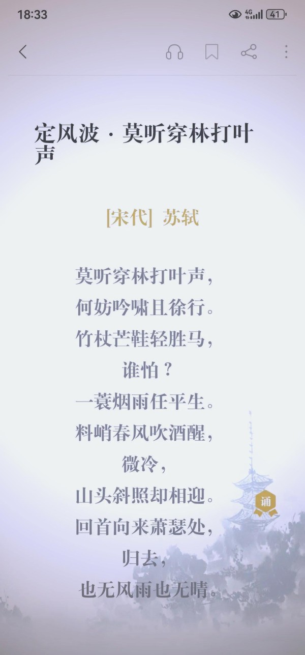苏轼的这种态度,源自于他对人生的深刻洞察以及对自然的深刻领悟。在他看来,人生如同一幅变幻莫测的画卷,有晴空万里,也有阴雨连绵;有风平浪静,也有波涛汹涌。这些都是自然的规律,无法人为改变。他尊重并顺应自然,不苛求人生永远风平浪静,而是坦然接受人生的起伏与变化。正是这种对自然的深刻领悟,让他在面对人生的风风雨雨时,能够保持冷静与平和,不为外界的纷扰所扰。