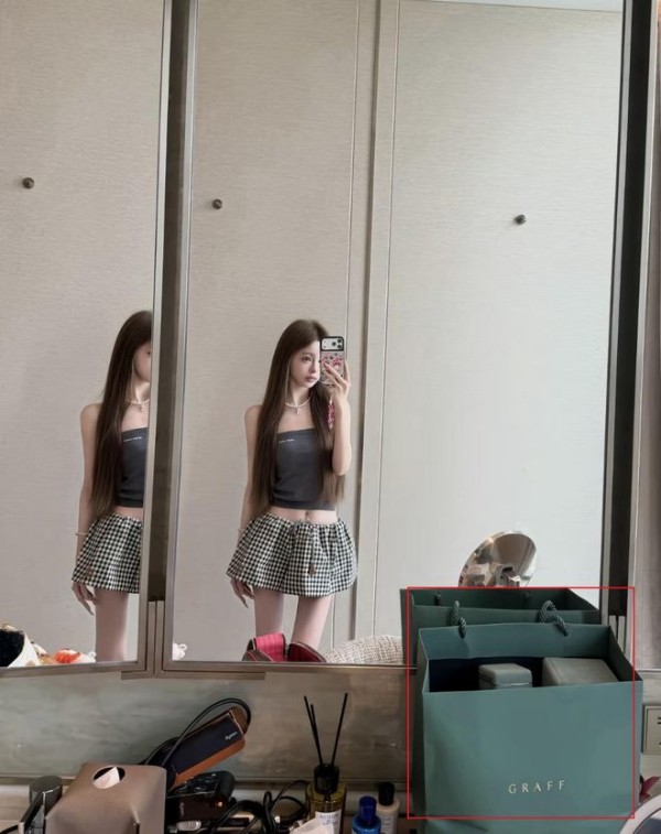 除了手写贺卡,王思聪的宠妻方式依旧延续了他一贯的豪横。懒懒晒出的当天拍摄的照片里,酒店的桌子上赫然摆放着好几个“graff”的品牌袋子,熟悉这个品牌的人都知道,它是高端珠宝品牌,每一件单品都要五位数以上,堪称珠宝界的“奢侈品天花板”。而懒懒面前的袋子装得满满当当,显然不止一件珠宝,这份出手阔绰的宠爱,直接拉满了氛围感,网友们纷纷调侃:“果然,王思聪宠人,从来都不手软。”
