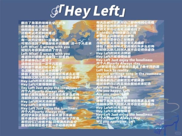 左航去年推出原创单曲《Hey Left》歌词。图片源自网络