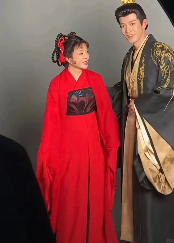 镜头中的刘晓庆妆容精致、身姿窈窕,一身红装更衬得她气色极佳。与身边年轻演员同框,一颦一笑灵动鲜活,完全看不出她已75岁。