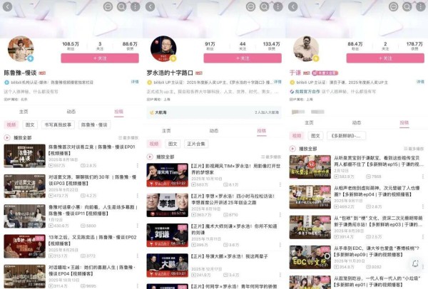 根据B站财报披露,目前站内视频播客用户数已突破6700万,累计播放时长超过80亿分钟,并诞生了《鲁豫慢谈》《于谦:多新鲜呐》《罗永浩的十字路口》等头部视频播客栏目。