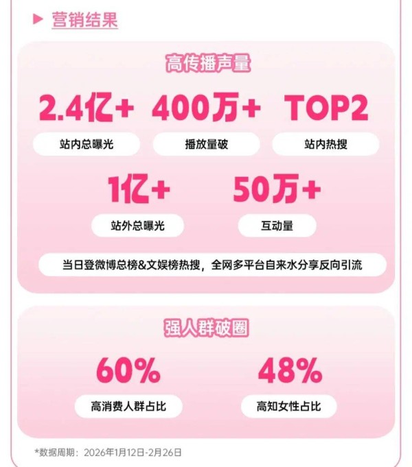 今年3月初,B站首次公布单期播客营销数据。由海蓝之谜赞助的“陈鲁豫对谈章小蕙”视频播客实现明显人群破圈,高消费人群占比达到60%,高知女性占比48%;单期站内曝光超过2.4亿,站外曝光超过1亿,互动量超过50万。